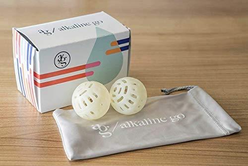 Enhance your health, reduce plastic bottle waste, and create alkaline water anytime, and anywhere. Each box contains two alkaline spheres that generate up to 6 months of alkaline water and one protective, microfiber storage case. Water is Critical to Your Good Health. Your body is designed to be approximately 70% water. The most critical fluid in your body, your blood, is mostly water. Your muscles, skin, and vital organs all contain and need large amounts of water for optimal health. Water also transports oxygen to your cells, delivers nutrients, removes waste, and provides energy to the body. "The cells of a healthy body are alkaline while the cells of a diseased body are acidic." - Dr. Arthur Guyton (author of the "Textbook of Medical Physiology"). Alkaline Go is an HDPE plastic (the same plastic used in water bottles) mixed with alkaline earth metals, and various other natural materials. This includes minerals such as calcium, potassium, magnesium, and iron. These are released gradually into the water and have their own specific benefits: Calcium: Important in maintaining healthy bones and teeth. Potassium: Aids in the formation of new cells. Magnesium: Relieves tense and nervous muscles. Iron: Helps prevent anemia. Anti-Oxidant Properties When drinking alkaline water, you are drinking a glass of anti-oxidants. This Ionized/Alkalized/ (fine-filtered) water delivers a massive amount of negatively charged electrons, to cling to & neutralize the free-radicals causing daily damage & premature aging within our bodies. Free radicals are the result of poor diet, stress, pollution, chemicals, medications, and more. Your Body is Too Acidic In our modern world, many of us are too acidic physically. Acidosis is the cause of many major and minor diseases, aches and pains. There is therefore an urgent need to alkalize.