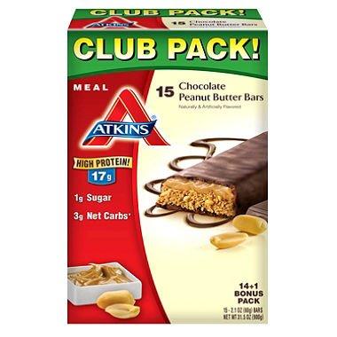 Atkins Chocolate Peanut Butter Meal Bars are packed with 17 grams of protein to keep you satisfied until your next meal. This soft bar has a chewy peanut butter core with a rich, creamy peanut butter layer all enrobed in a chocolaty coating. The bar is a delicious complement to your low-carb lifestyle with no added sugar!