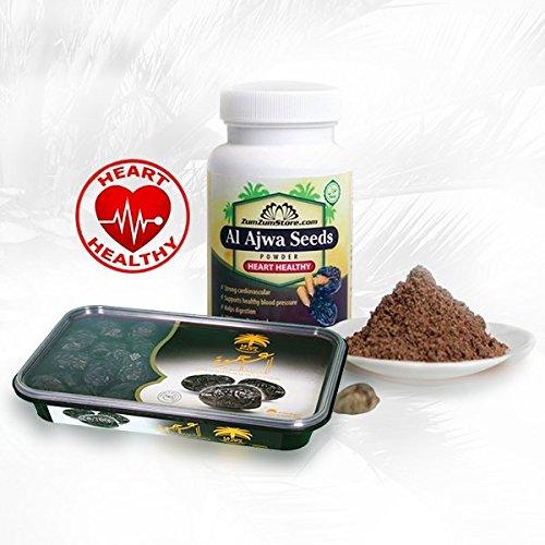 Heart Healthy Power Pak # 2 (Al Ajwa Dates 800g + Al Ajwa Seeds Powder) You will get Al Ajwa Dates 800g + Al Ajwa Seeds Powder No cholesterol, No preservatives and No fat High in potassium and fiber Heart-Healthy food / Fresh whole fruit