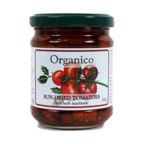 • Organic Sun-Dried Tomatoes in herbs and cold-pressed sunflower oil. Juicy tomatoes picked in summer, sun-dried and specially marinated to produce a rich, full flavour.