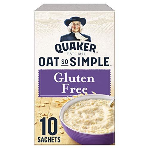 Quaker Oat So Simple Gluten Free Original Porridge 10 x 35g Gluten Free, The Quaker Way Oats are naturally gluten-free, but stray wheat, rye or barley can be introduced during harvesting and transportation. At Quaker, we've used our 139 years of expertise to design a proprietary method for removing stray grains. Then we rigorously test our high quality oats to meet gluten-free standards to provide your family with satisfaction in every bowl. These delicious, nutritious, gluten-free oats are high in fibre. 100% wholegrain and help lower cholesterol. Oat beta-glucan has been shown to lower cholesterol. High cholesterol is a risk in the development of coronary heart disease. Full Product Name: Microwaveable Gluten Free Oats Ingredients: Quaker Wholegrain Rolled Oats. Free From Gluten.