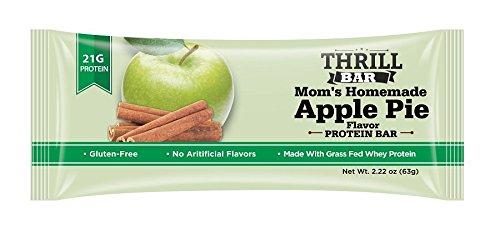 Tastes just like Moms Apple Pie, made with real apple chunks, dry-roasted organic almond butter, cinnamon and grass-fed whey protein. 21g of Protein per bar Only 7g sugar Delicious and nutritious Won't bloat your stomach like other bars